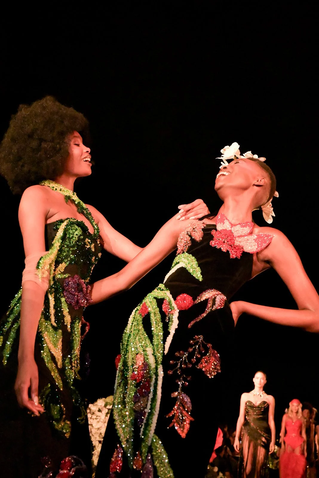 C'est une mode qui vit, qui bouge, qui respire. De nombreusesheures de travail par pièce — invisibles pour le public, mais que l'on devine à chaque détail.